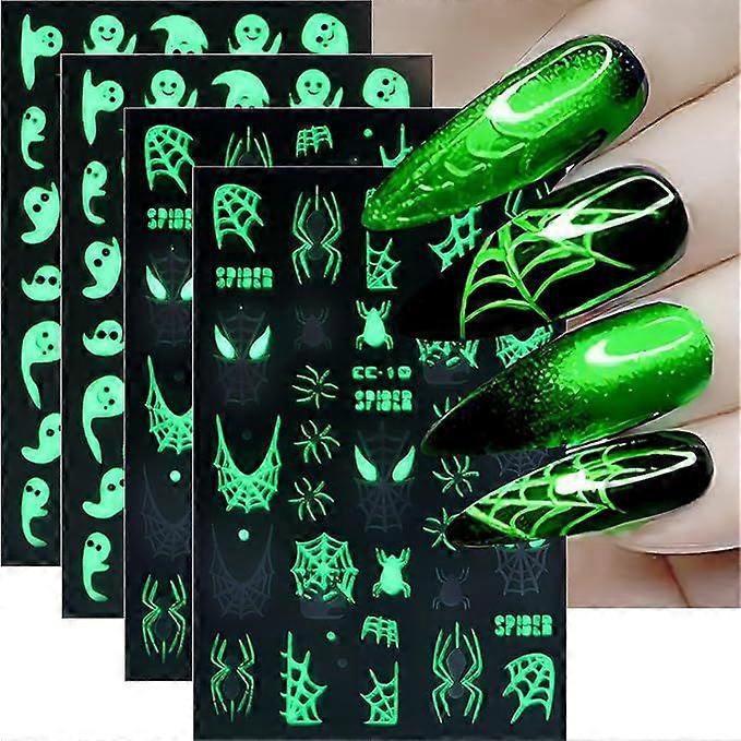 Halloween Glow in The Dark Nail Art Stickers Luminous Nail Decals 3D Self-Adhesive Ghost Spider Bat Nail Design 6PCS Halloween Nail Art Supplies for W