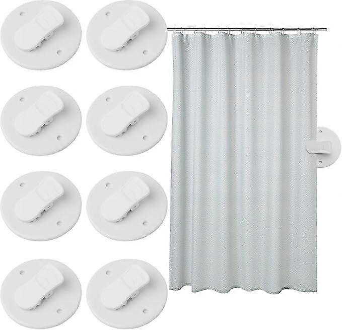 3.5x5.5cm 8pcs Self Adhesive Shower Curtain Clips Windproof Splash Guard White Bathroom Accessories for Holding Shower Curtain and Curtains
