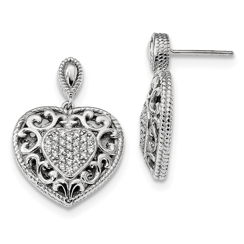 Boucles d'oreilles pendantes en argent sterling 925 rhodié et zircon cubique en forme de cœur, 27 x 19,85 mm de large, pour femme.