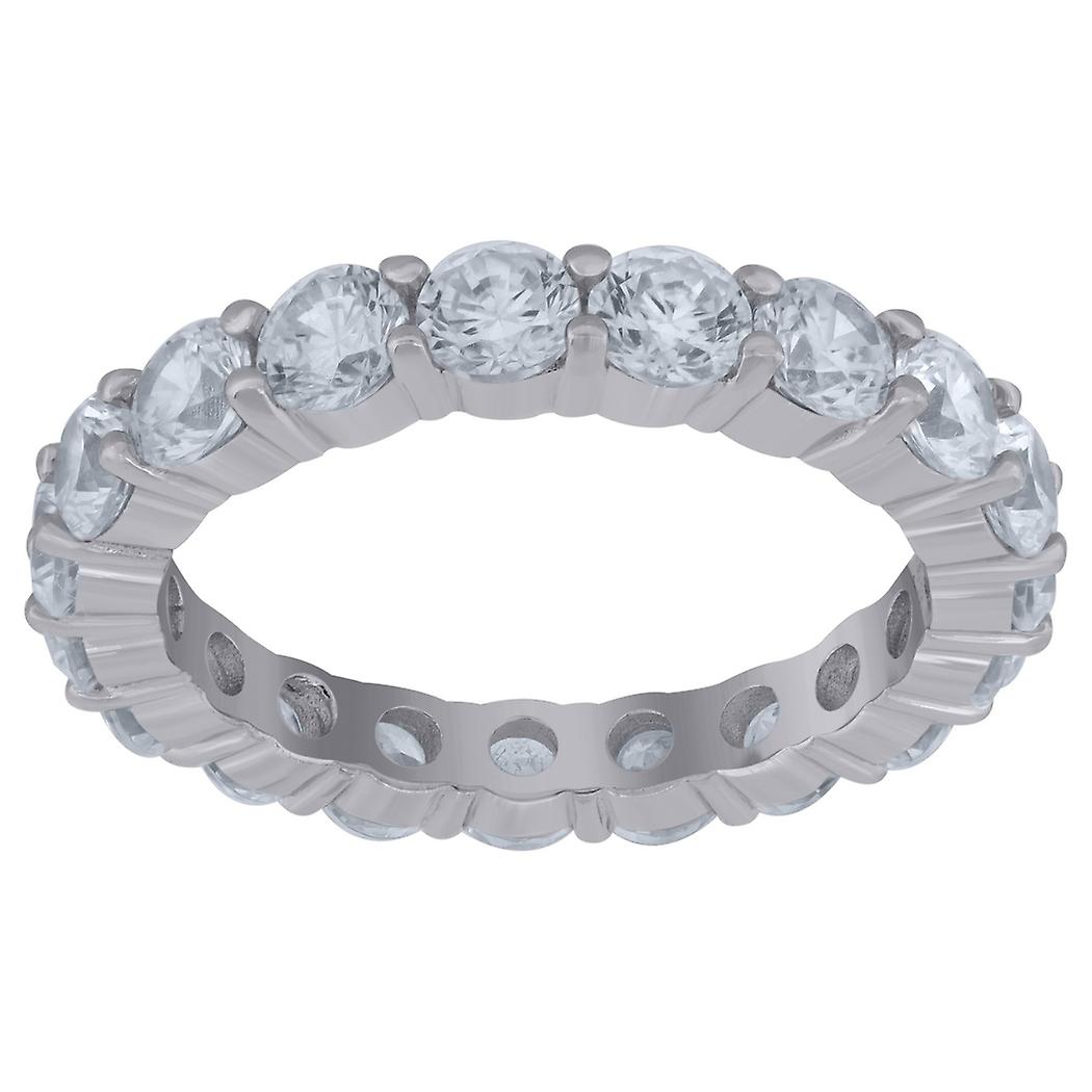 925 Sterling Silver Womens Round Cubic Zirconia Single Row Eternity Engagement Ring 3.5mm Eternity Ring for Women - Ring