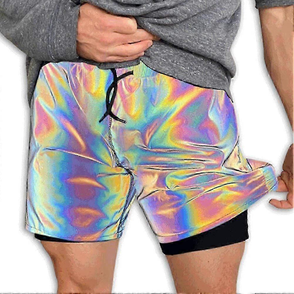Men Rainbow Reflective Shorts Pants Hip-hop Fluorescent Outdoor Sports Casual Night Jogger Fitness Shorts Explosionn
