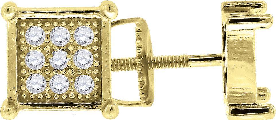925 Sterling Silver Yellow tone CZ Square Stud Unisex Screw Back Earrings 7.1x7.1mm Wide Stud Earring for Women