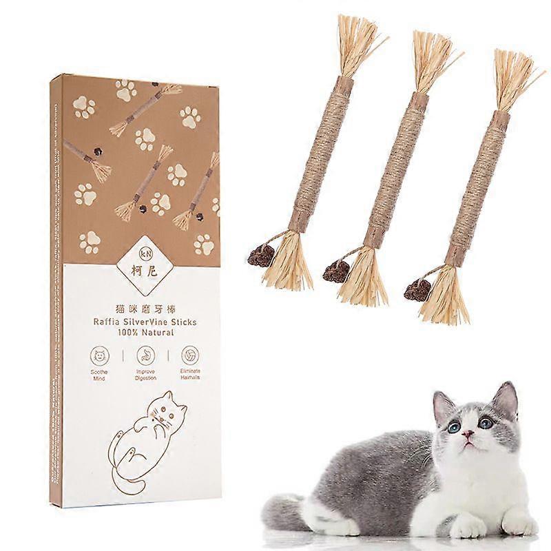 3 Pack Silvervine Sticks Cat Toy, Natural Chew Stick for Dental Care Teeth Cleaning, Cat nip Treat Toys for Indoor Cats& Kittens