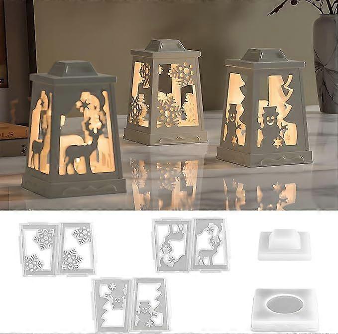 Silicone Mould Christmas Lantern, Silicone Moulds Casting Moulds Christmas Candle Holder Plaster for Casting, Silicone Christmas Elk Snowflakes Snowma