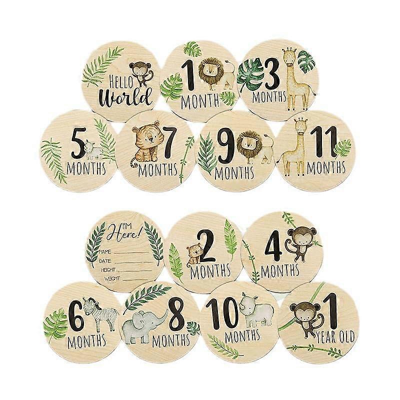 7pcs Baby Monthly Milestone Cards Sign Wooden Round Newborn Welcome Sign Double Sided Baby Announcement Sign