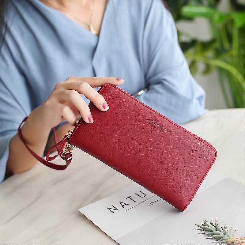 Women’s Leather Zip-Around Wallet – Large Capacity Credit Card Clutch Wristlet