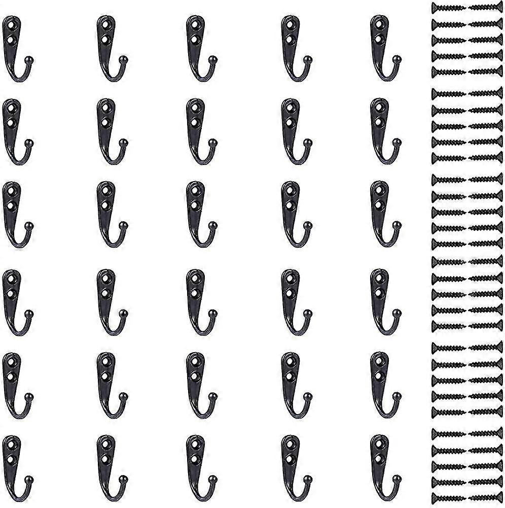 Lot: 30 pcs black single coat hooks with screws (44 x 30 mm / 1<br>73 x 1<br>18 inches)<br>Robust material: the coat hook is made of zinc alloy and the screw is made of iron, hard and resistant, not easy to break and resists rust and erosion<br> recommended to mount on solid wood or wooden surface<br> 15KG maximum weight capacity<br>Suitable for bedroom, bathroom, children's playroom, children's bedroom, home office / study, conservatory, all-purpose room, hallway, veranda, garage, etc<br>