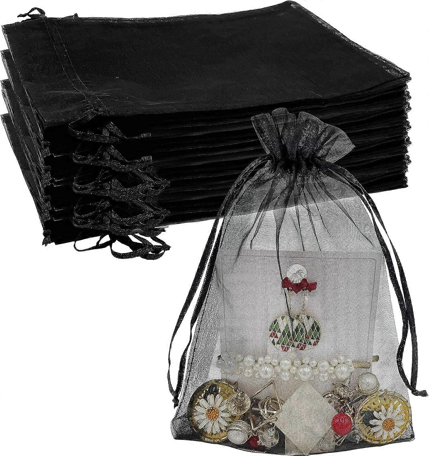 100PCS Black Organza Drawstring Bags, 5x7 Inch Mesh Pouches for Wedding or Party Favors