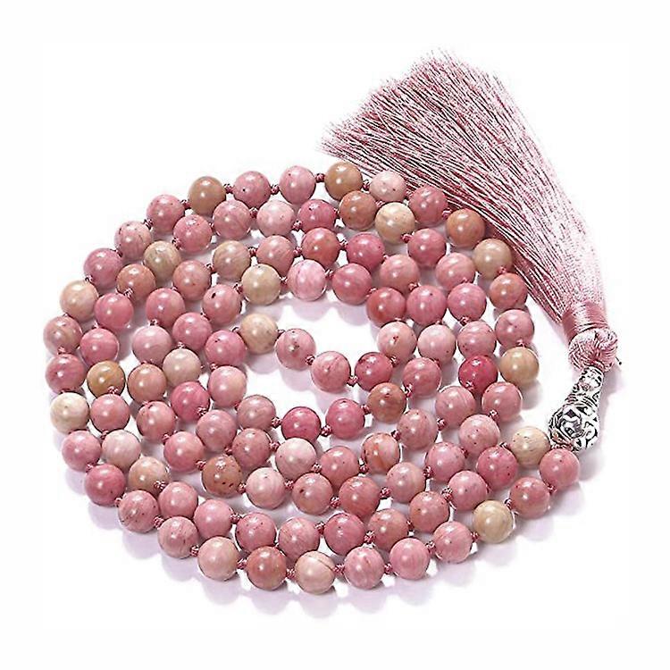 Specification: <br /> The inner perimeter of the necklace (bracelet) is 32.5". <br /> It is about 7.2" when it wrapped 4 layers about 5.5" when it wrapped 5 layers. <br /> Tassel length: 3.54 inches. <br /> Made of 6mm natural stone beads. <br /> <br /> Mala for Meditation: <br /> The Mala Beads Necklace is not only jewel but also a traditional meditation tool that has been used for thousands of years. Malas can represent different people and different things. Some people focus on mala s psychotherapeutic abilities while others use it to guide them in meditation. <br /> <br /> Rhodochrosite <br /> Rhodochrosite comes from two Greek characters which refer to Rose and Color respectively to symbolize its special color. Rhodochrosite has a nice nickname "Eros Little Cupid" which can bring a beautiful marriage to the wearer. Rhodochrosite are mostly pink series with milky white stripes between them very beautiful and bright.Womens 108 Mala Prayer Beads Wrap Necklace with Long Tassel Healing Crystal Stone Necklaces Yoga Meditation Reiki Quartz Jewelry