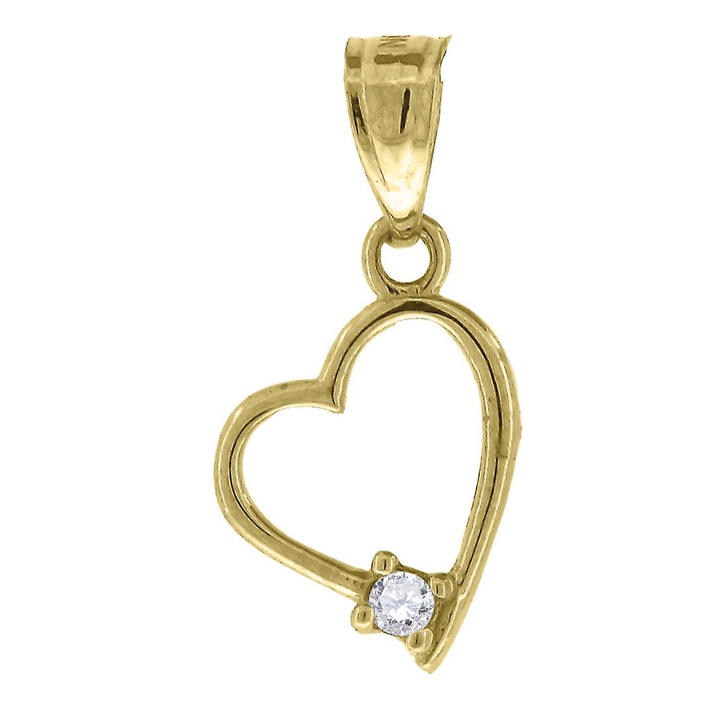 10k Yellow Gold Womens Cubic Zirconia CZ Love Heart Charm Pendant Necklace 17x8.00mm Wide Pendant for Women