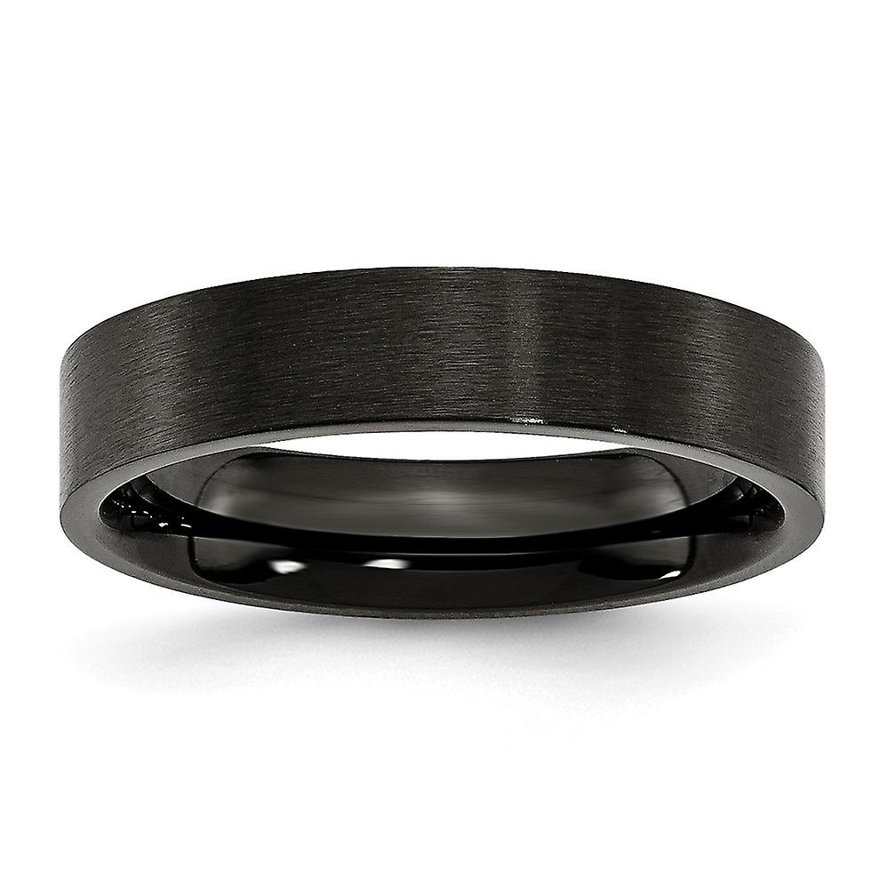 Stainless Steel 5mm Black Ip Plated Brushed Flat Band Ring Ring for Women and Men - Ring Size: 6 to 13