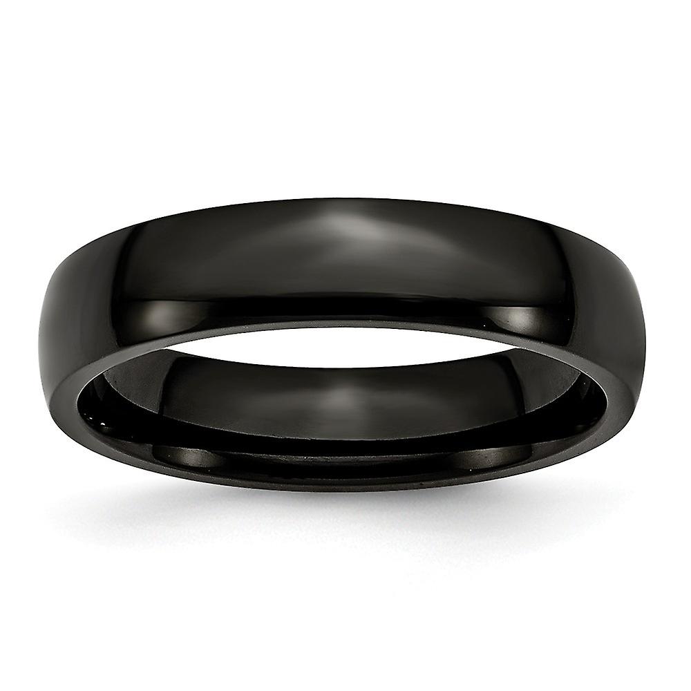 Stainless Steel Half Round 5mm Black Ip Plated Polished Band Ring-Ring for Women and Men - Ring Size: 6 to 13