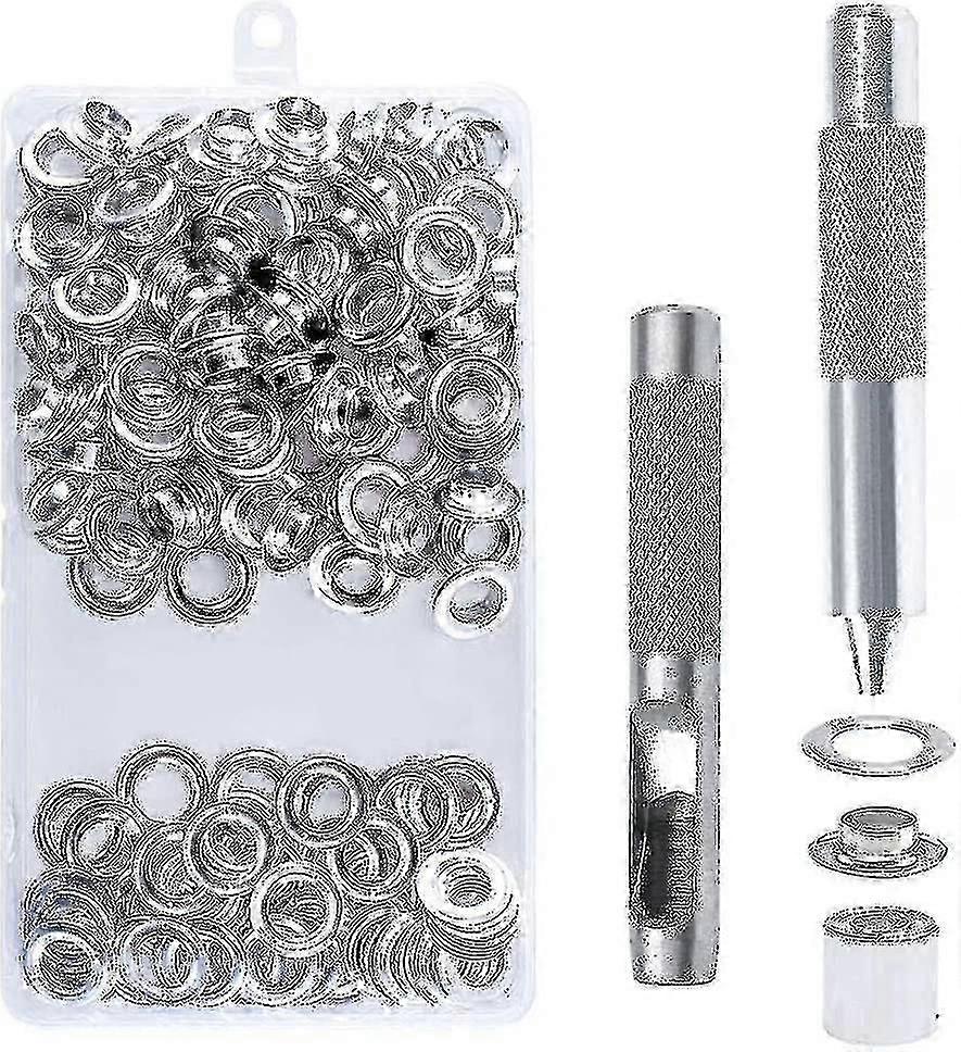 100-Piece 14mm Metal Grommet Kit with Tools for Canvas, Tarp, and Tent Repairs in Silver