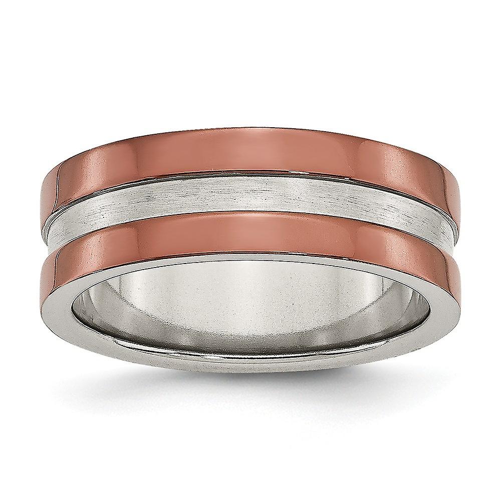 Stainless Steel 8mm Brown Plated Grooved Polished Band Ring-Ring for Women and Men - Ring Size: 7 to 13