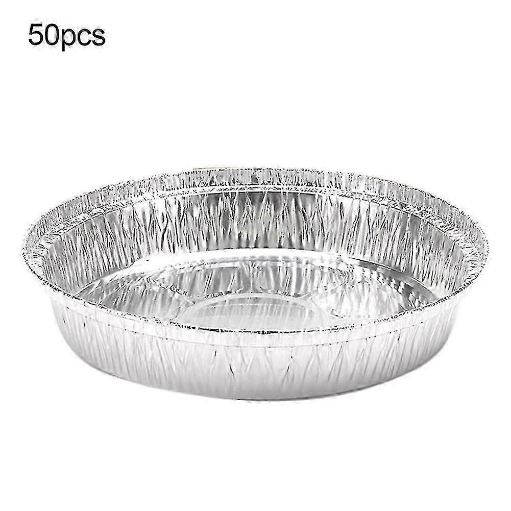 50 Disposable Round Aluminum Foil Trays, Non-Stick for BBQ Food and Baking, Convenient Party Containers