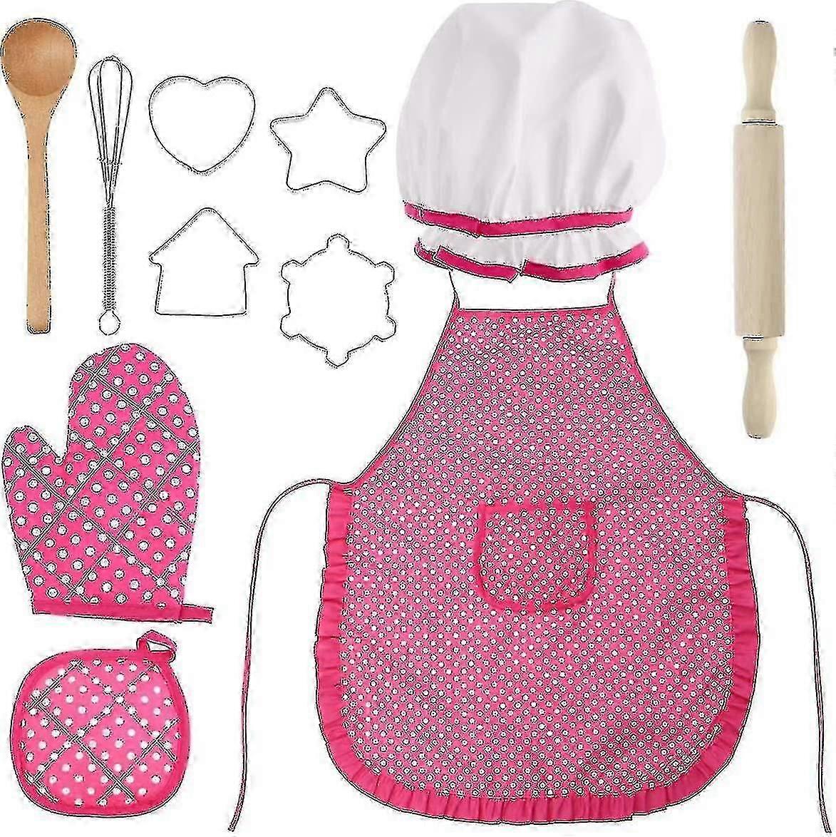 11-Piece Kids Chef Set with Apron and Hat - Kitchen Role Play Costume with Safe Knife and Cutter