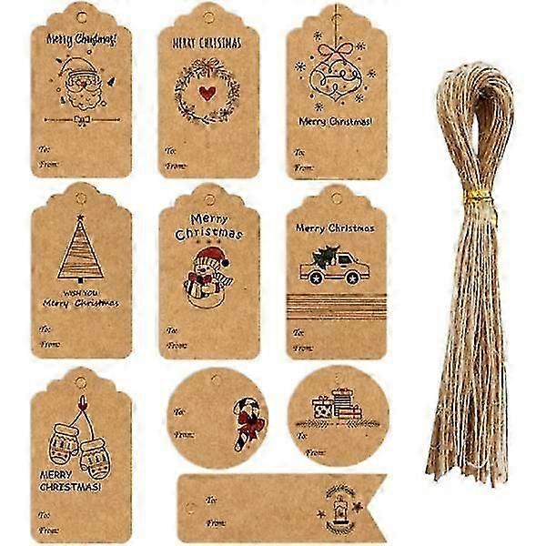 Set of 50 Christmas Gift Tags: Kraft Paper Designs with Jute Twine for Eco-Friendly and Festive Present Wrapping