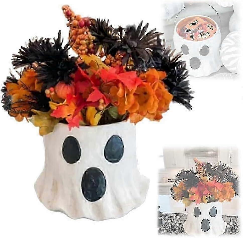Large 2025 Resin Mache Halloween Bucket for Trick or Treat, Doubles as a Spooky Ghost Planter or Candy Bowl