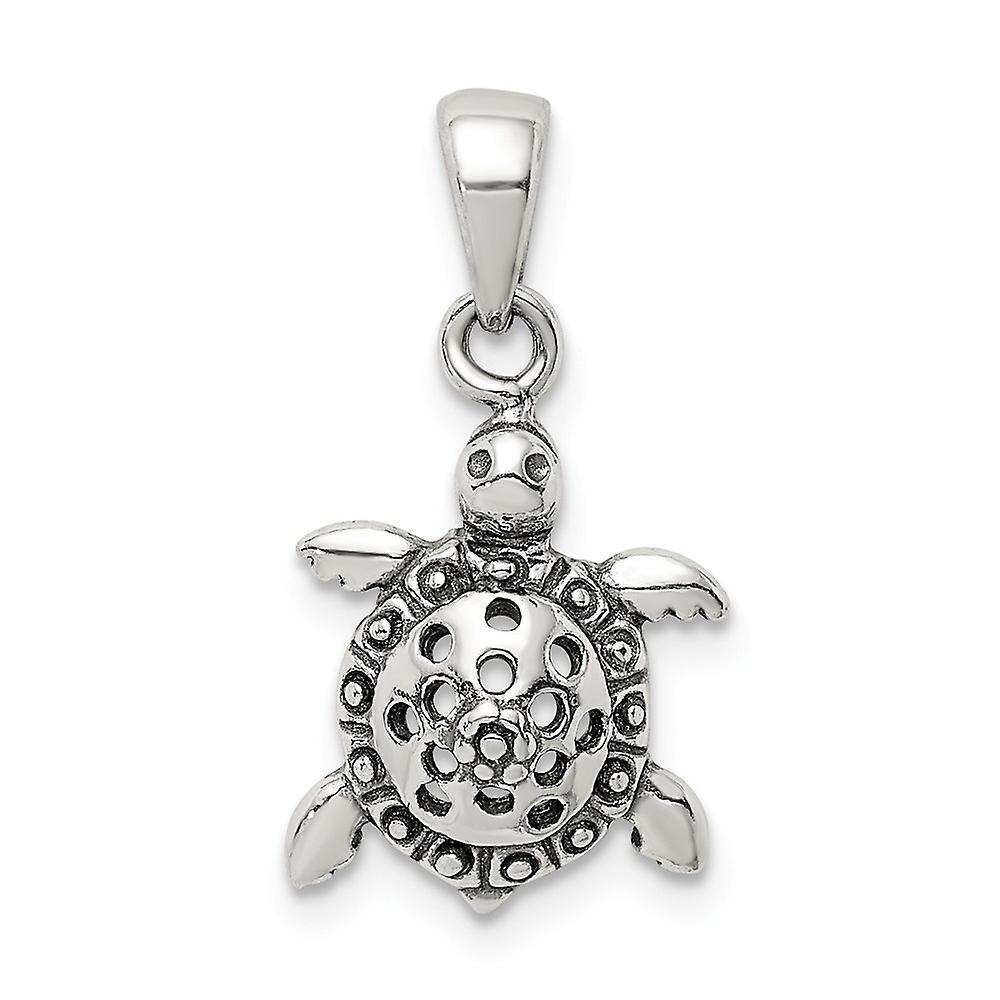 Sterling Silver Antiqued Turtle Pendant - Measures 16.88x11.24mm Wide - 1.3 Grams in Sterling Silver - - Charm/Element Width: 11 mm - Width of Item: 11.24 mm - Charm/Element Length: 12.5 mm - Length of Item: 16.88 mm - Bail Length: 6.47 mm - Bail Width: 3.02 mm - Finish: Antiqued - - This Item Does Not Ship With a Chain