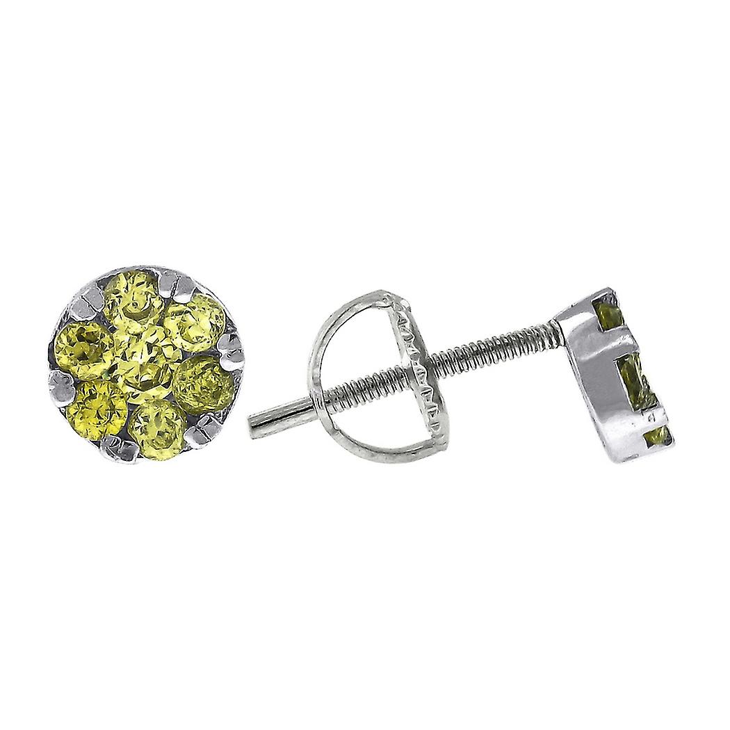 925 Sterling Silver Womens Yellow Round CZ Stud Cluster Flower Fashion Earrings 5.5x5.5mm Stud Earring for Women