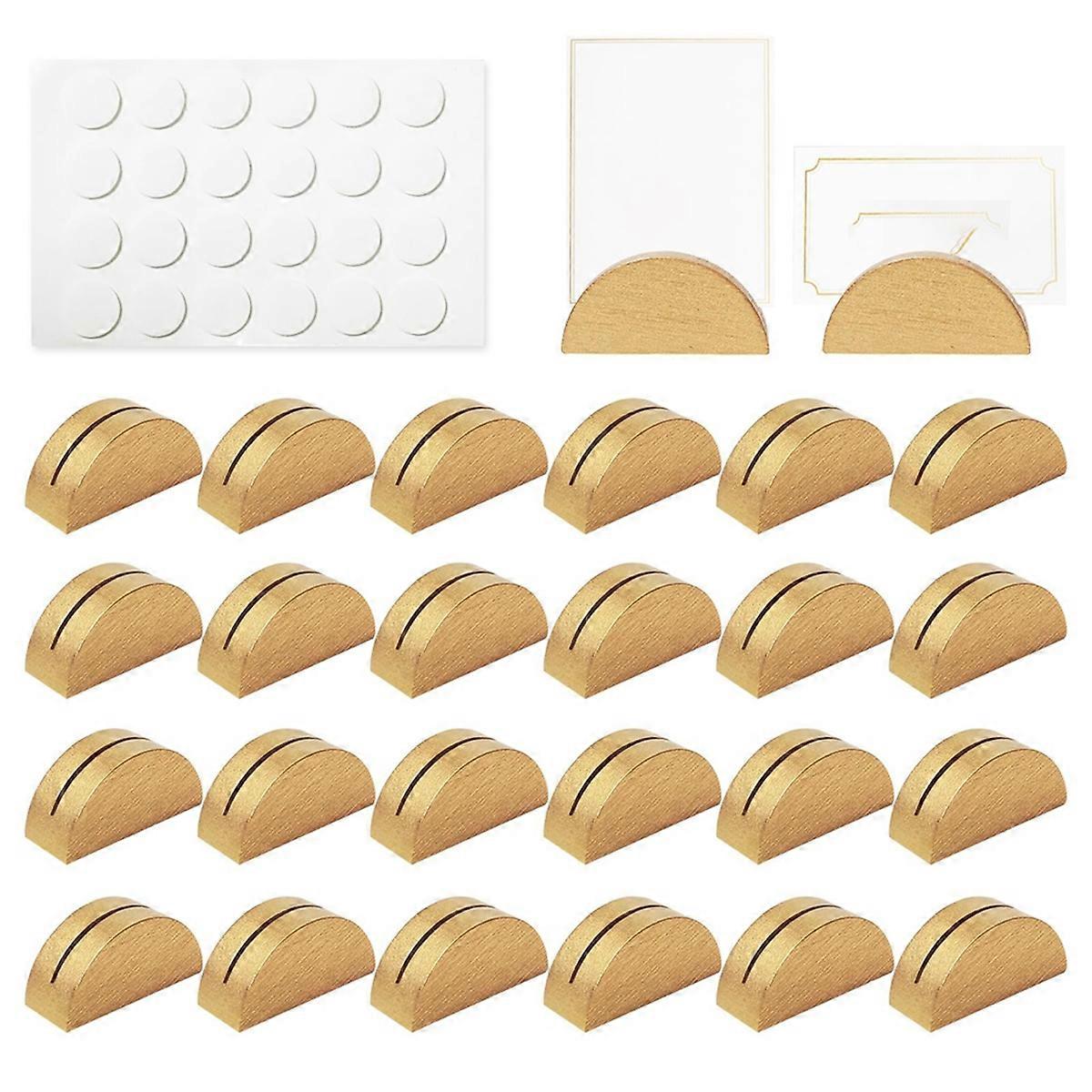 24 Pieces Gold Wooden Place Card Holders, Semicircular Table Number Stands for Wedding Party Restaurant Decoration