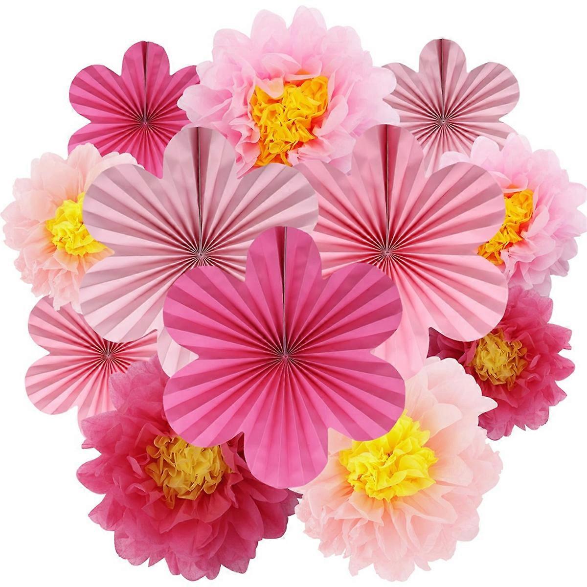 12 Pcs Paper Flower Fans & Paper Flowers Pompoms Rose Pink Peach Hanging Garland Decoration for Wedding Birthday Party