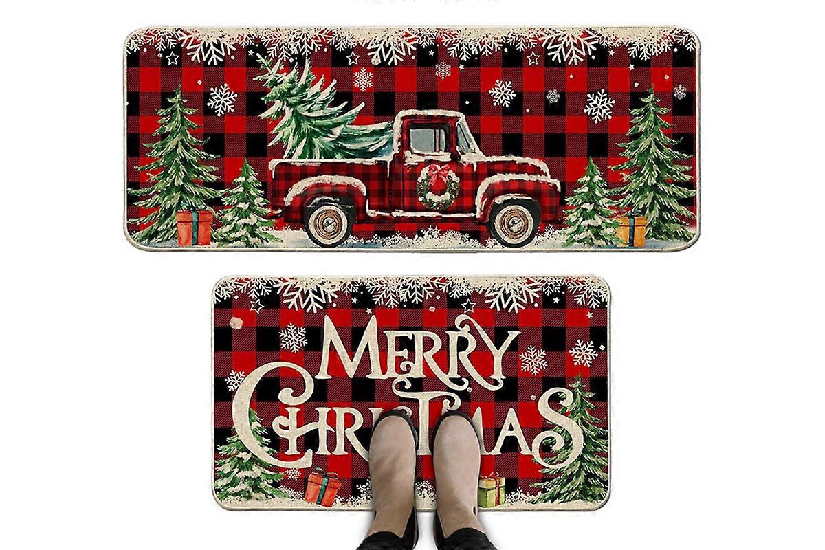 2PCS Christmas Floor Mats Non Slip Kitchen Rug for Bathroom Living Room Doorway