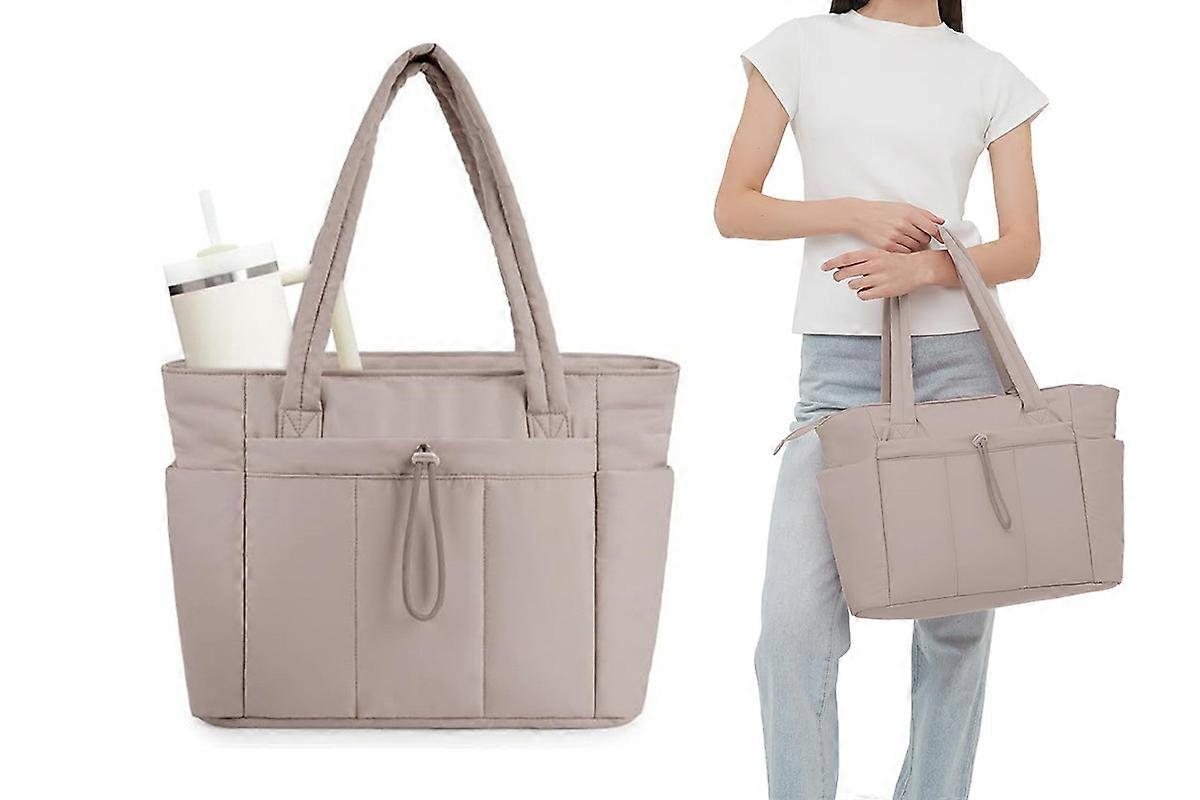 Women Handheld Tote Bag with Cup Holder Compartment and Luggage Sleeve-Camel