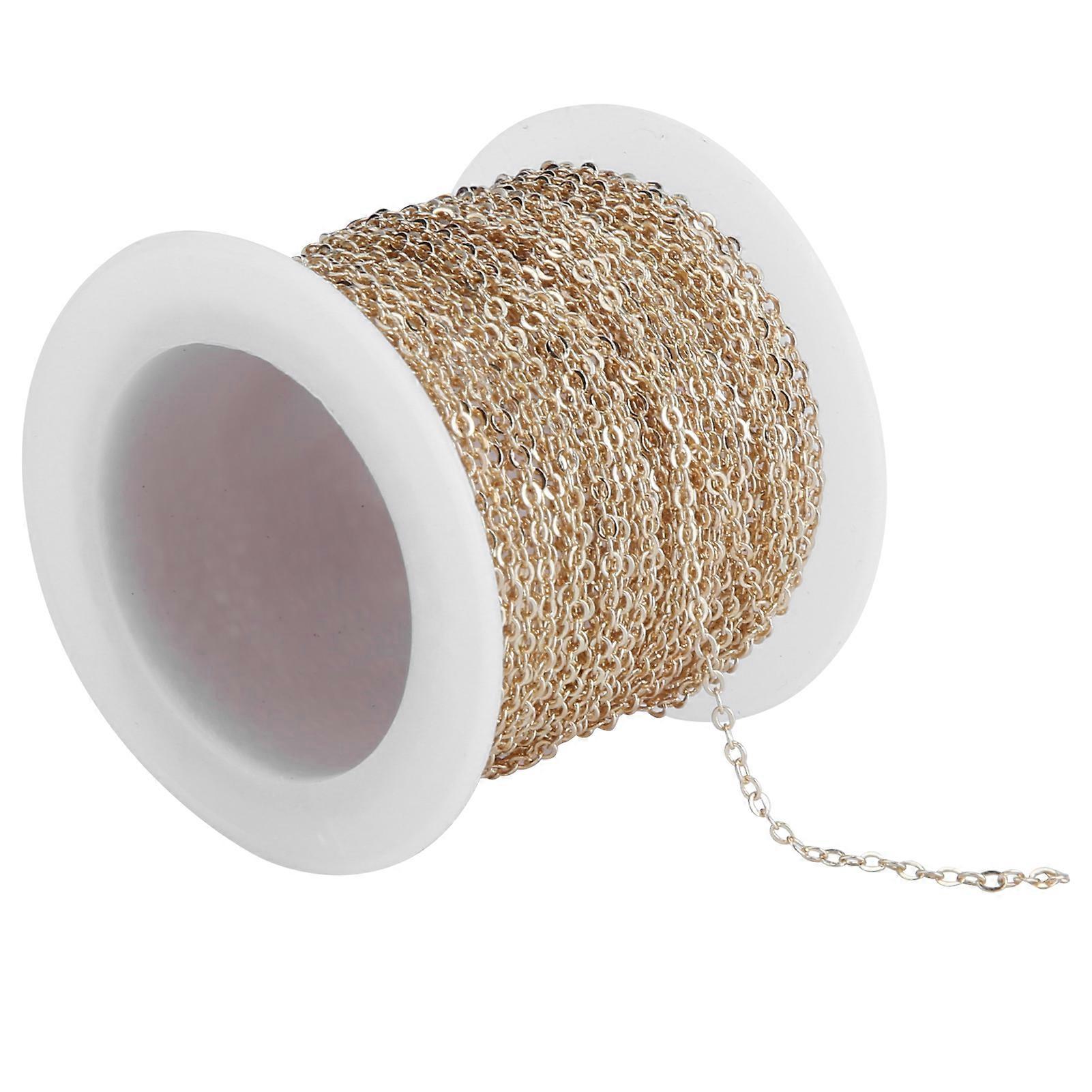 Accessoires de bijoux DIY, bobine de chaîne plate en croix de 10 mètres pour bracelet et collier, extension KC dorée, 2,2 x 1,8 x 0,3 mm