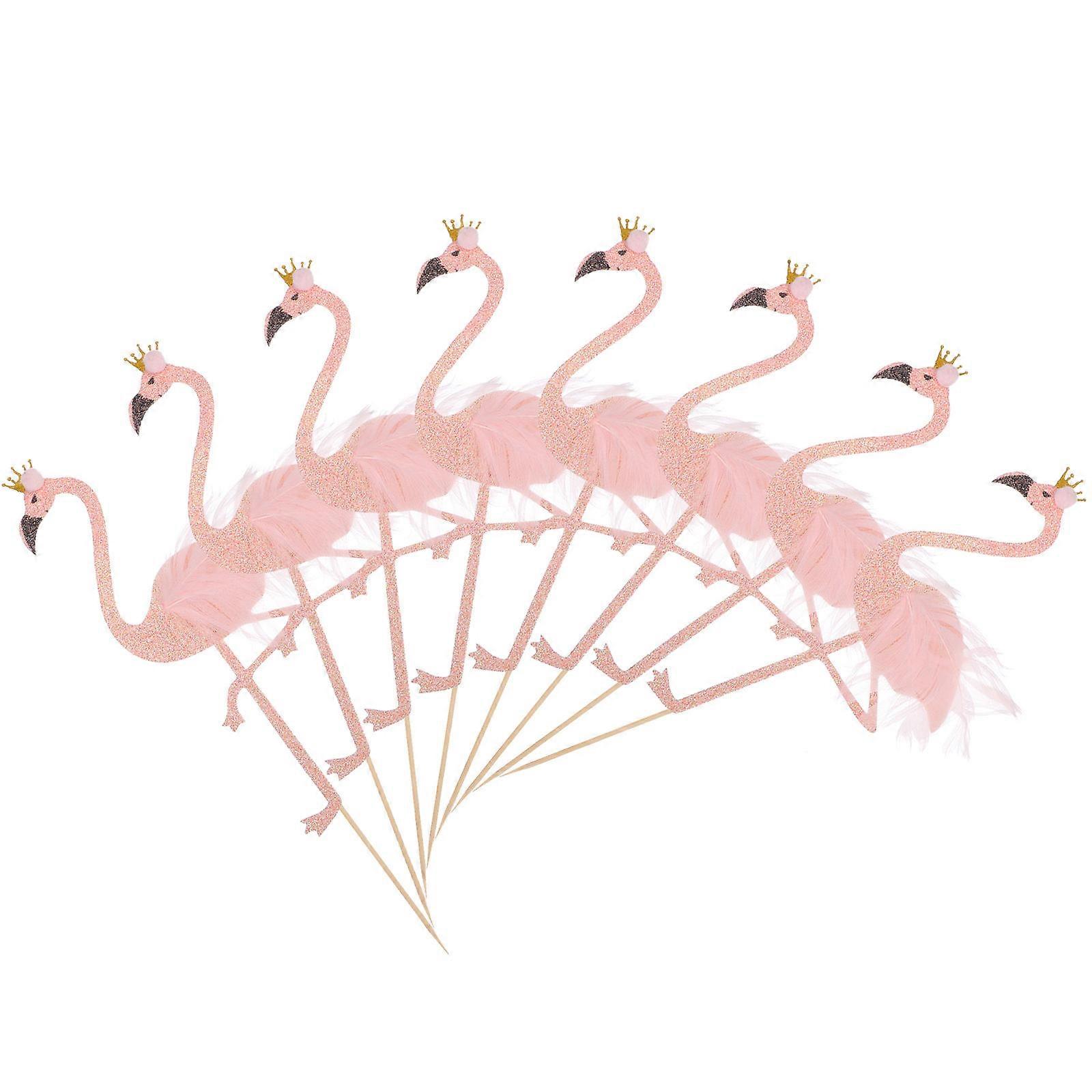 Pink Flamingo Cake Insert Cards for Decoration 8Pcs Tropical Theme Toppers