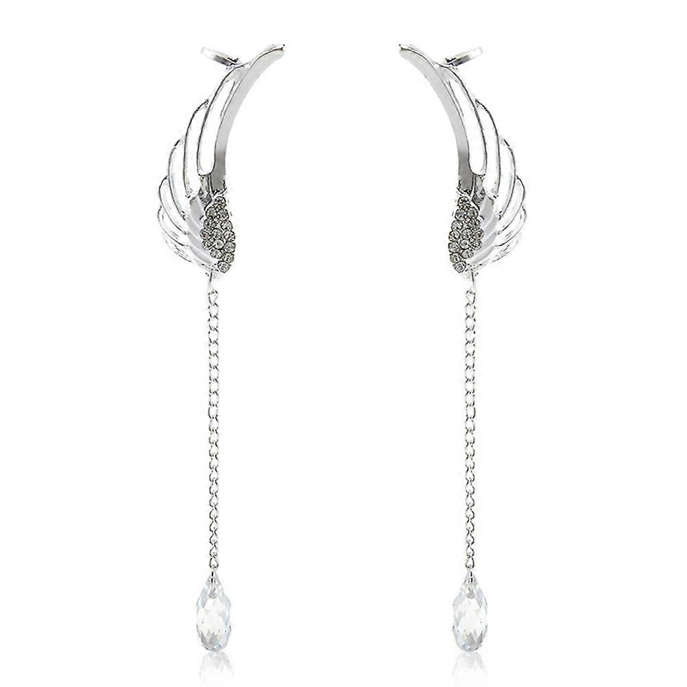 Are you looking for a kind of earrings that can match most of your clothes? This item will be a good choice. It is a pair of non-piercing angle wing ear cuff with water drop dangle, which is made of for durable use. They look super beautiful and elegant. Perfect as a gift for family and friends. Features - Color: Silver. - Material: Alloy. - Size: Approx. 10 x 1 x 1cm/ 3.9 x 0.39 x 0.39 inch (LxWxH). - , not easy to fade or damage. - Fine polished surface, smooth and comfortable to wear. - The elegant design with rhinestones decor can highlight your appearance, grasp everyone's eyes in the crowd. - Non-piercing, lightweight and easy to wear. Easily to match most kinds of costume. - A nice gift for family and friends. Package list: 1 Angel Wing Crystal Water Drop Dangle Earrings Clip Non-piercing Ear Cuff