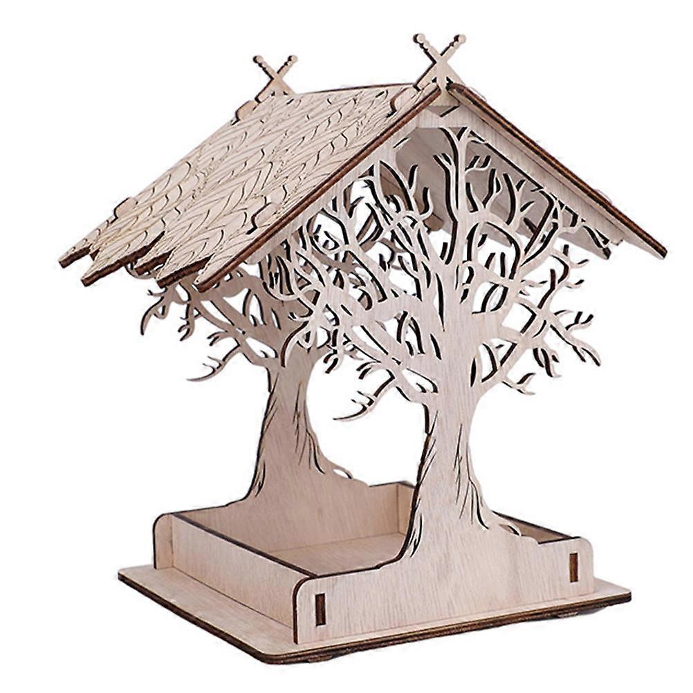 Wooden Bird Feeder Hanging Type Outdoor Bird Food Dispenser 1Pcs