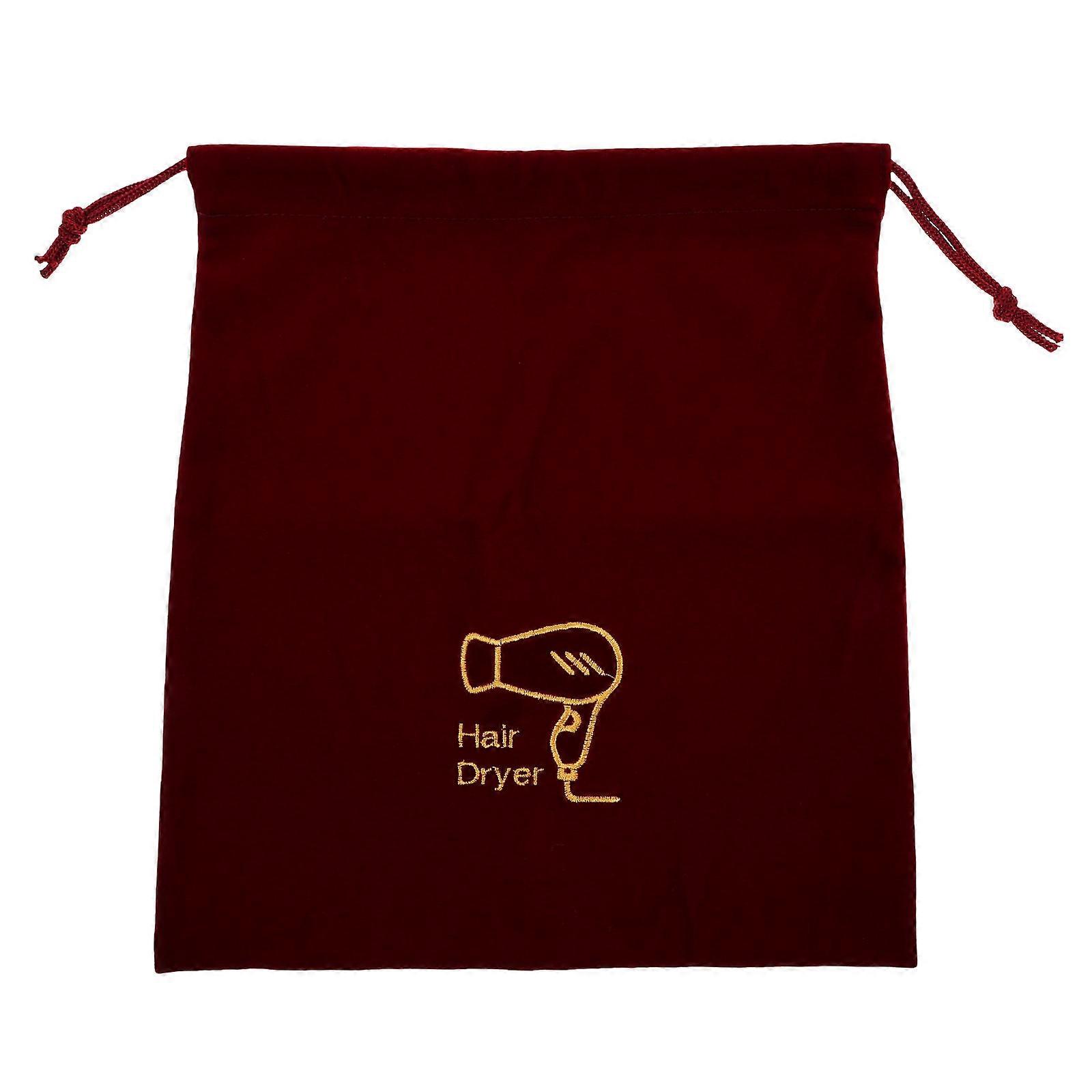 Dark Red Drawstring Velvet Hair Dryer Bag for Storage Travel Organizer