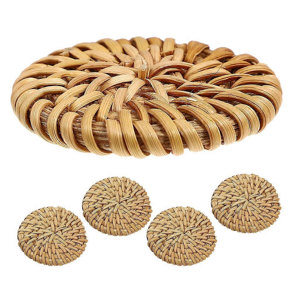 Rattan Disc Charm 5Pcs Light Brown Unique Handwoven Design for Decor