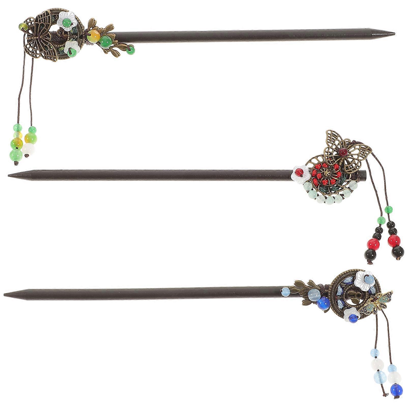 Wooden Ethnic Style Hairpin 3Pcs Assorted Color Elegant Nobility Hair Decor for Decor Use