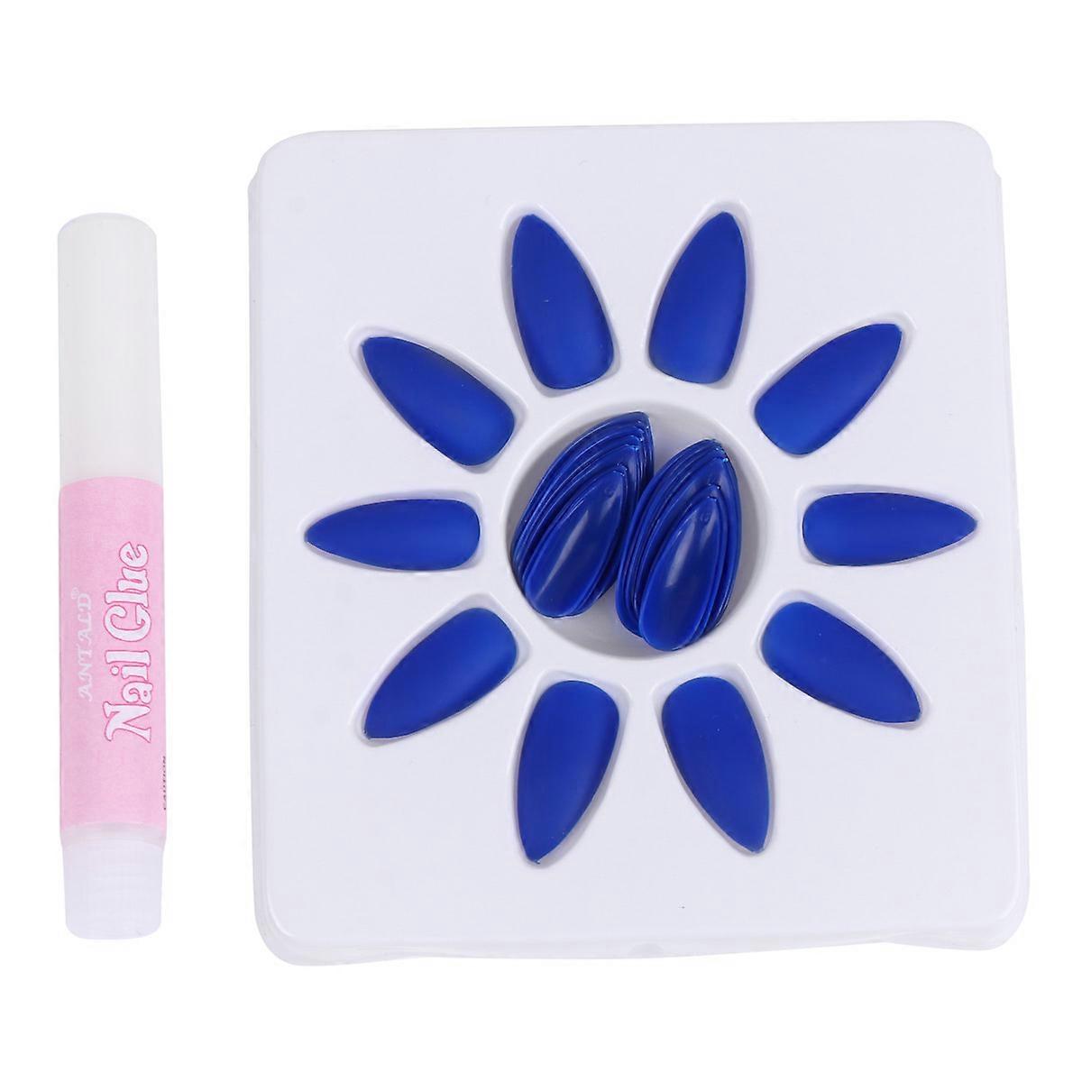 Portable Blue Fake Nail Stickers for Nail Art 48Pcs False Tips