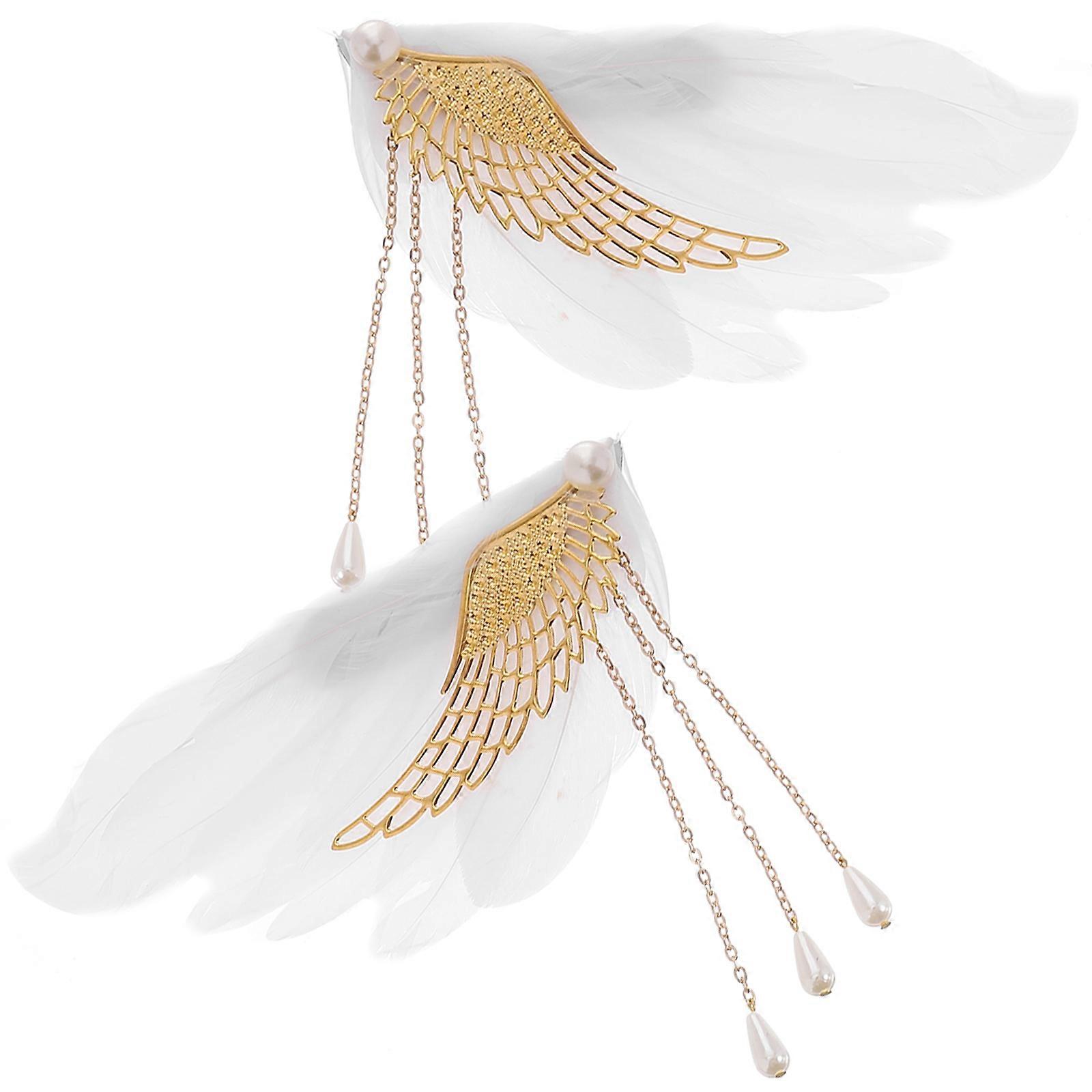 Wedding Hair Clips Plume Hairpin for Women 2Pairs White Tassel Accessory