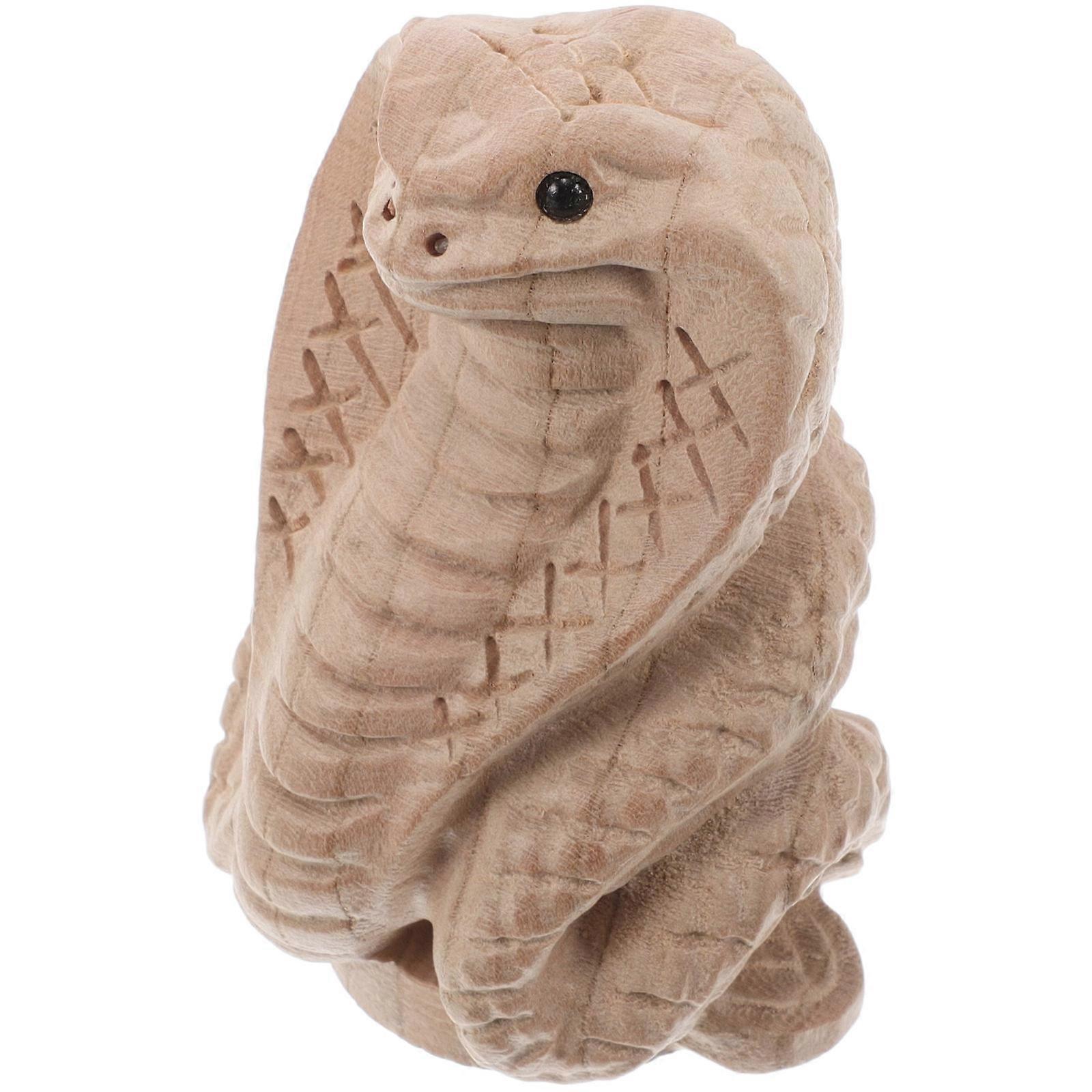 Zodiac Snake Figurine 2Pcs Beige Wood Tiny Snake Statue for Decoration Featuring Cultural Heritage