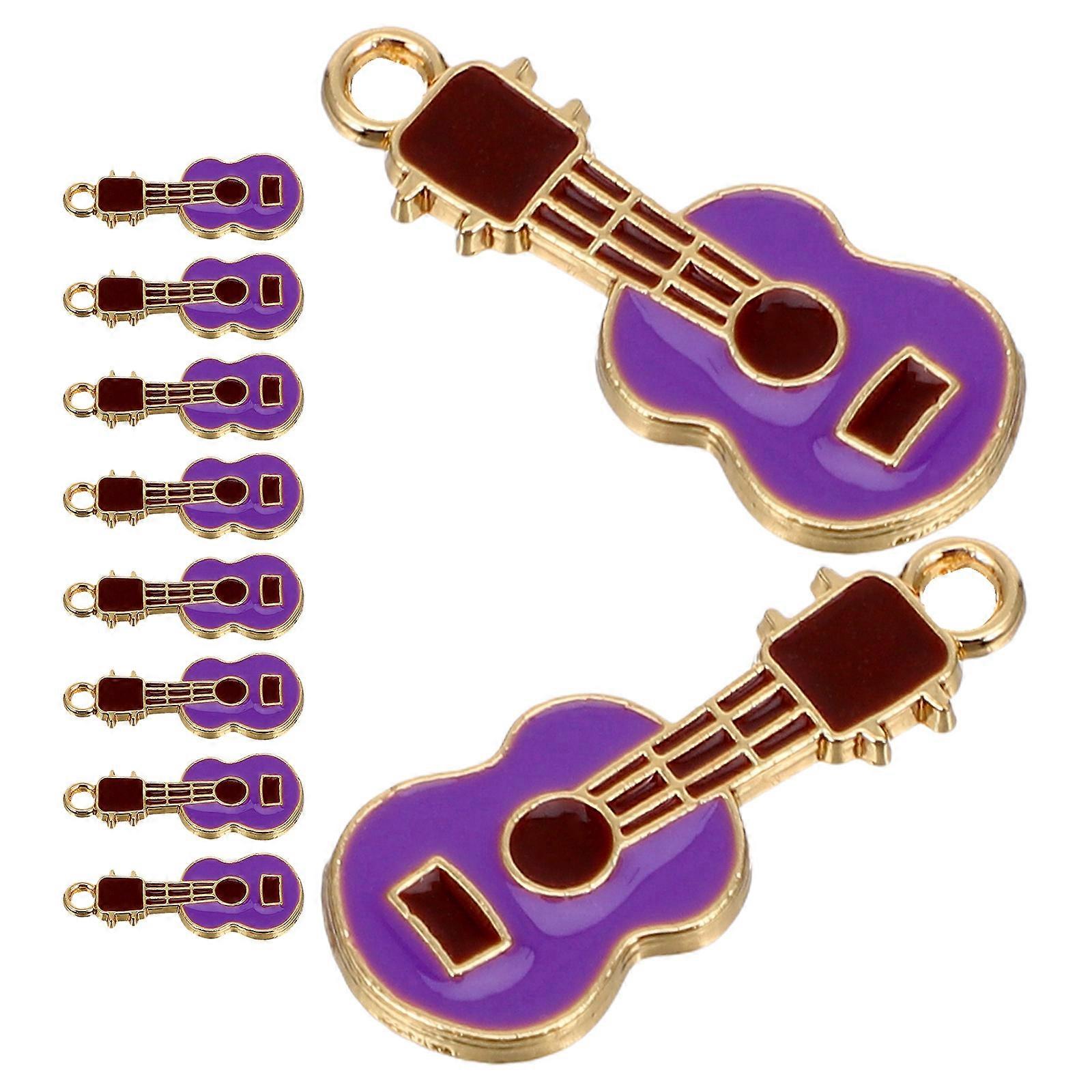 Guitar Charms Purple Guitar Pendants for Jewelry Making 10Pcs