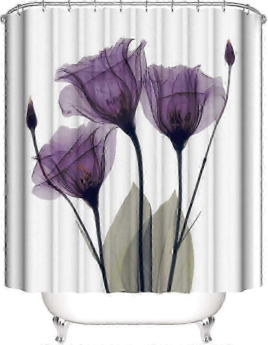 Purple Flower Shower Curtain Set - Floral Bath Decor for Bathroomq
