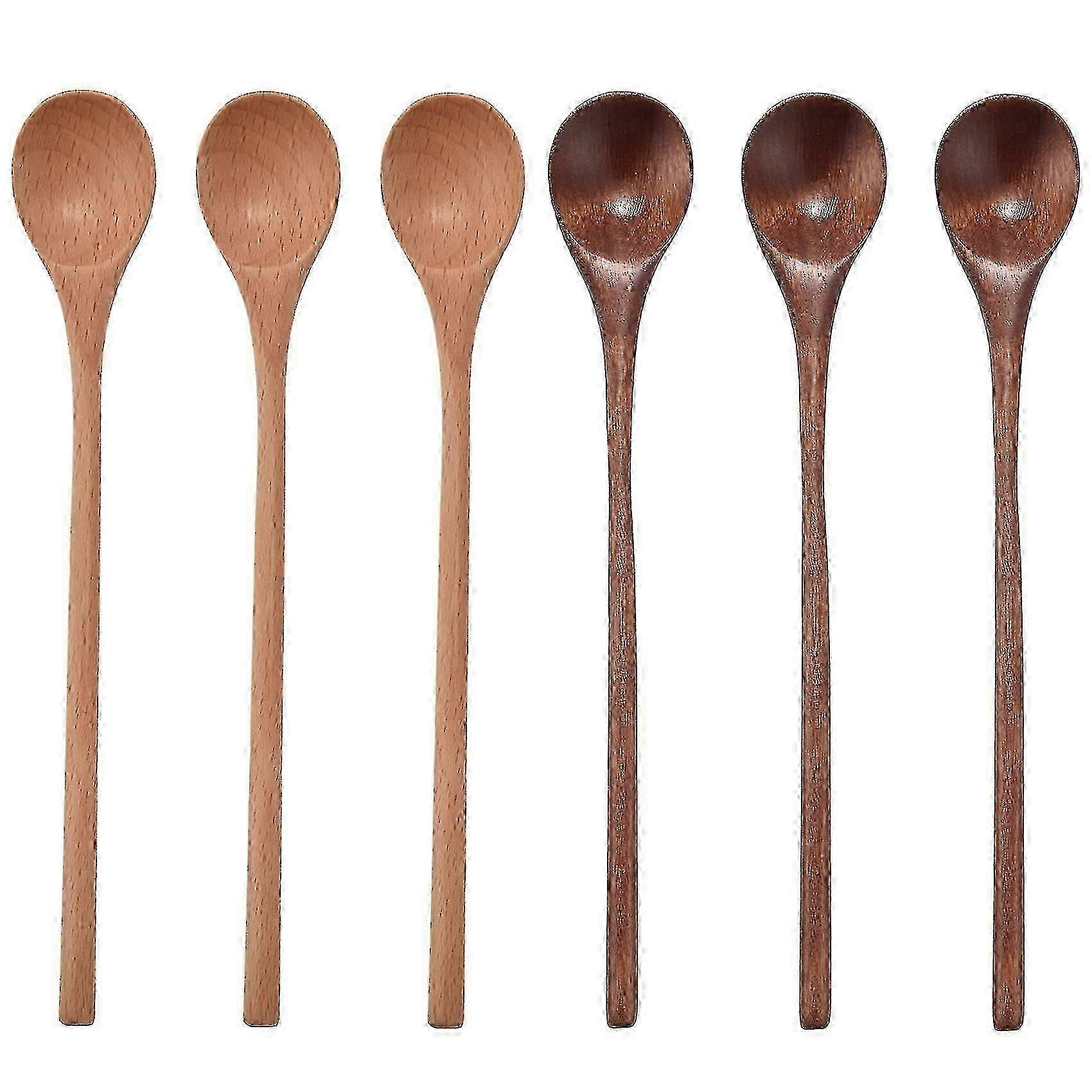 6 Pcs Wooden Spoon,long Handle Wood Spoons Mixing Stirring Soup Coffee Iced Tea Spoon Used For Kitcq
