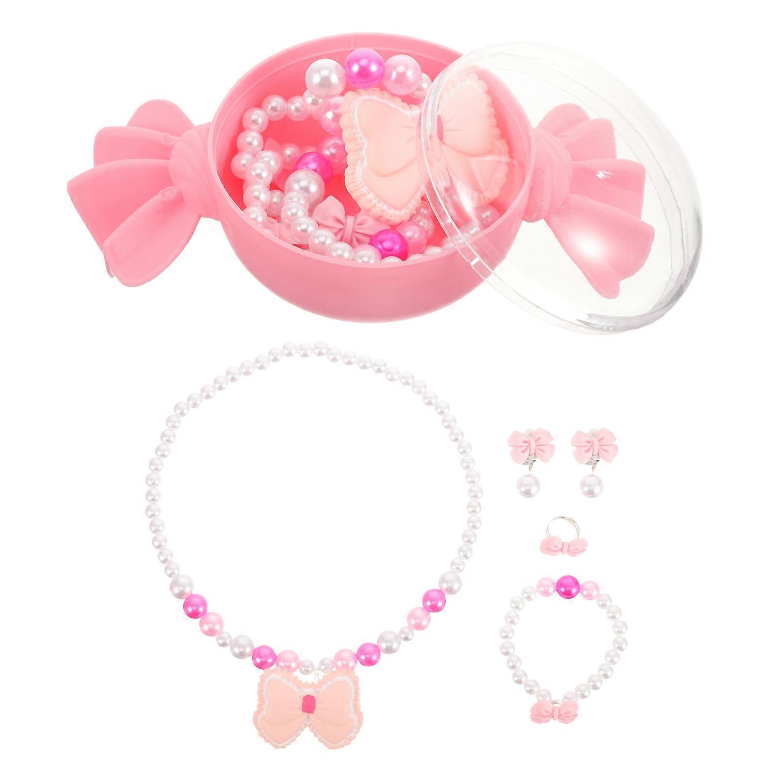Toddler Jewelry Bowknot Necklace for Girls 5Sets Pink Plastic