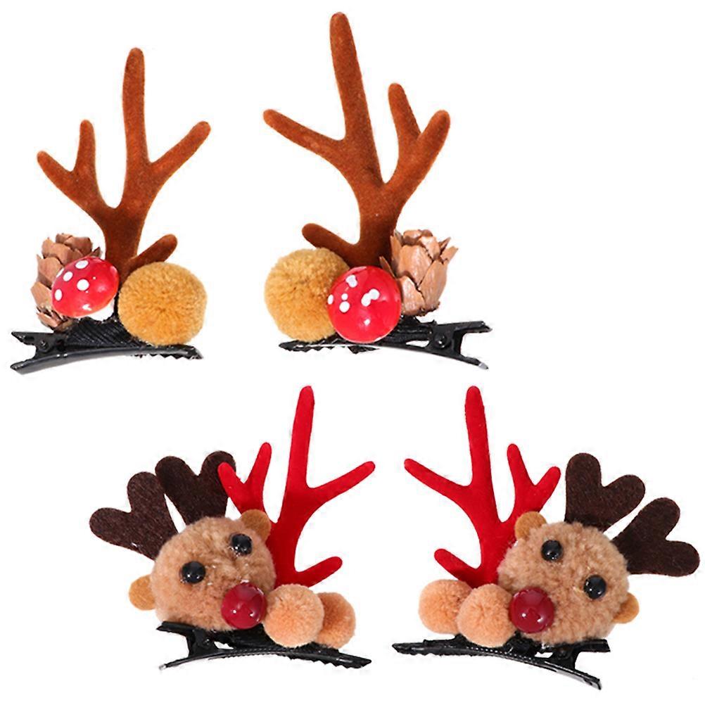 Christmas Antlers Hair Clips Hairpins for Kids 4Pairs Assorted Color Decoration