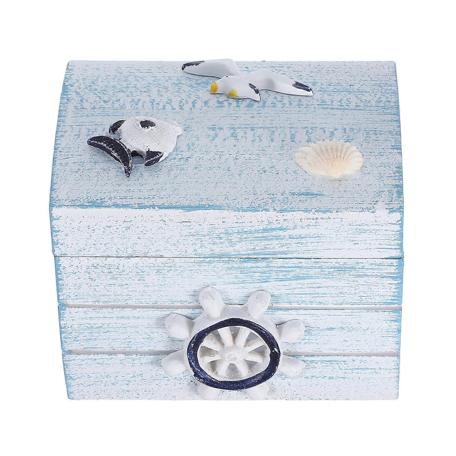Nautical Wooden Box for Storage 2Pcs Blue Ocean Style Treasure Chest