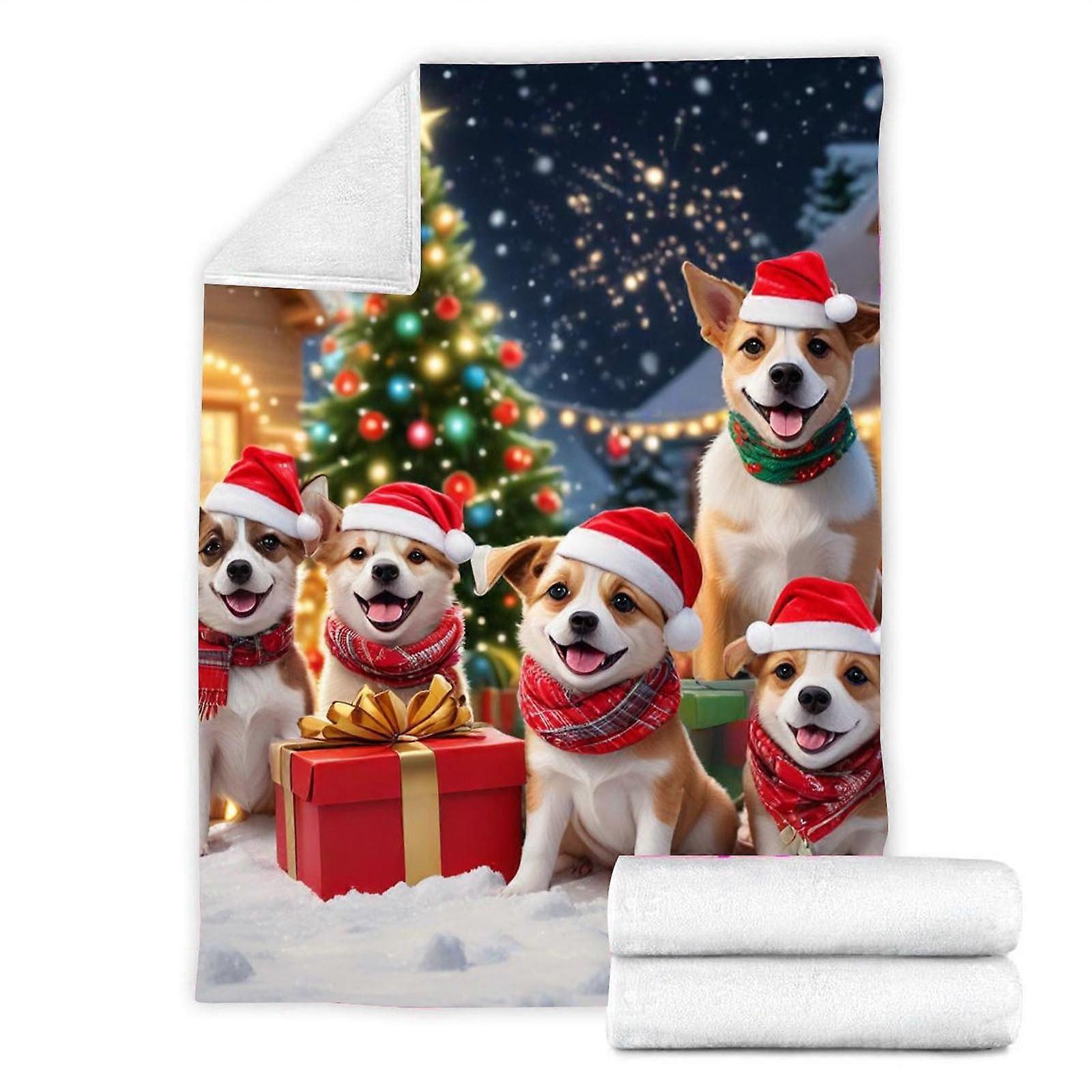 Christmas Blanket Dogs Wearing Santa Hats Winter Soft Warm Nap Blankets Christmas Blanket 100x70cm