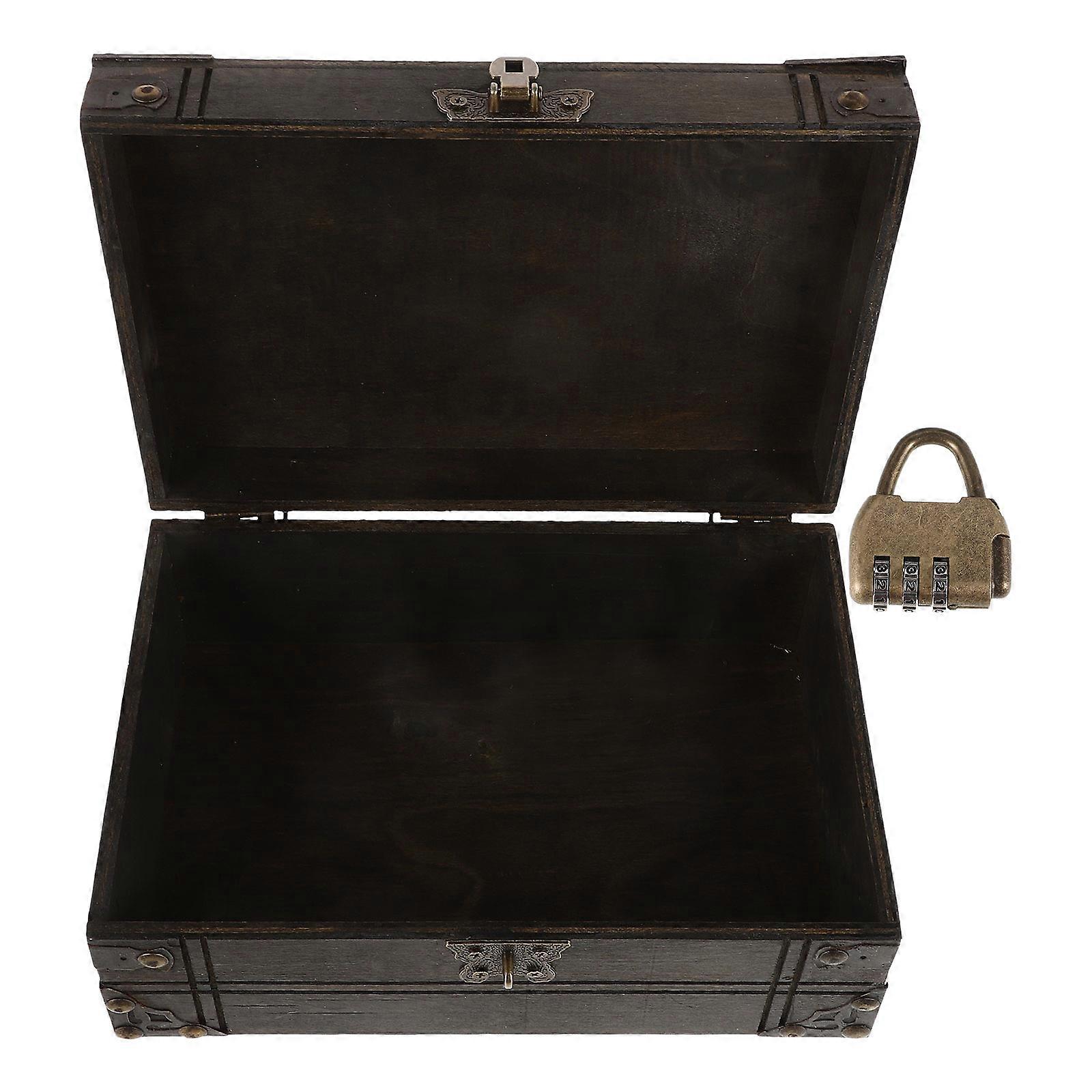 Retro Wooden Treasure Box for Storage 3Pcs Dark Brown Pirate Chest Set
