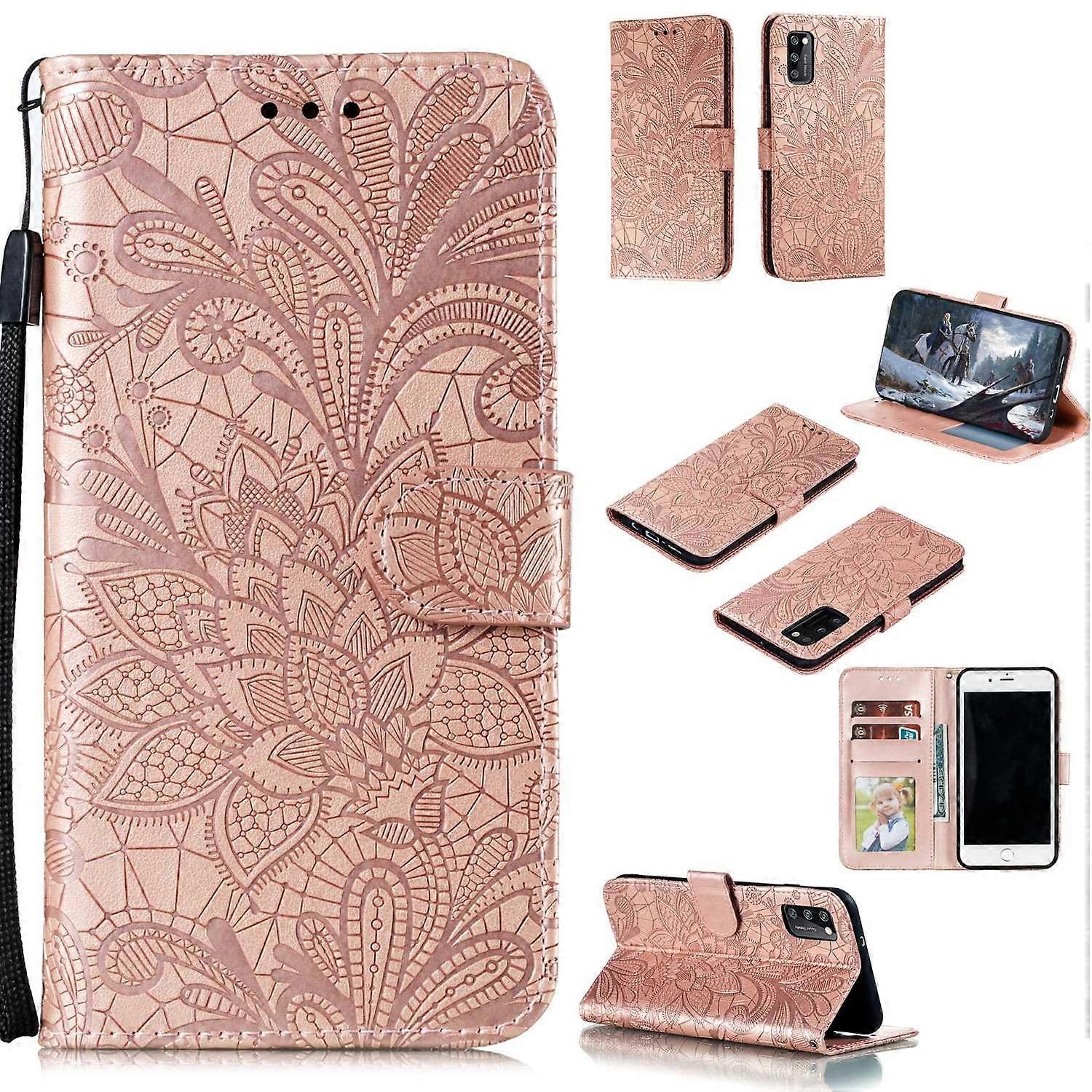 Imprinted Lace Flower Skin Leather with Wallet Stand Case for Samsung Galaxy A41 (Global Version) -