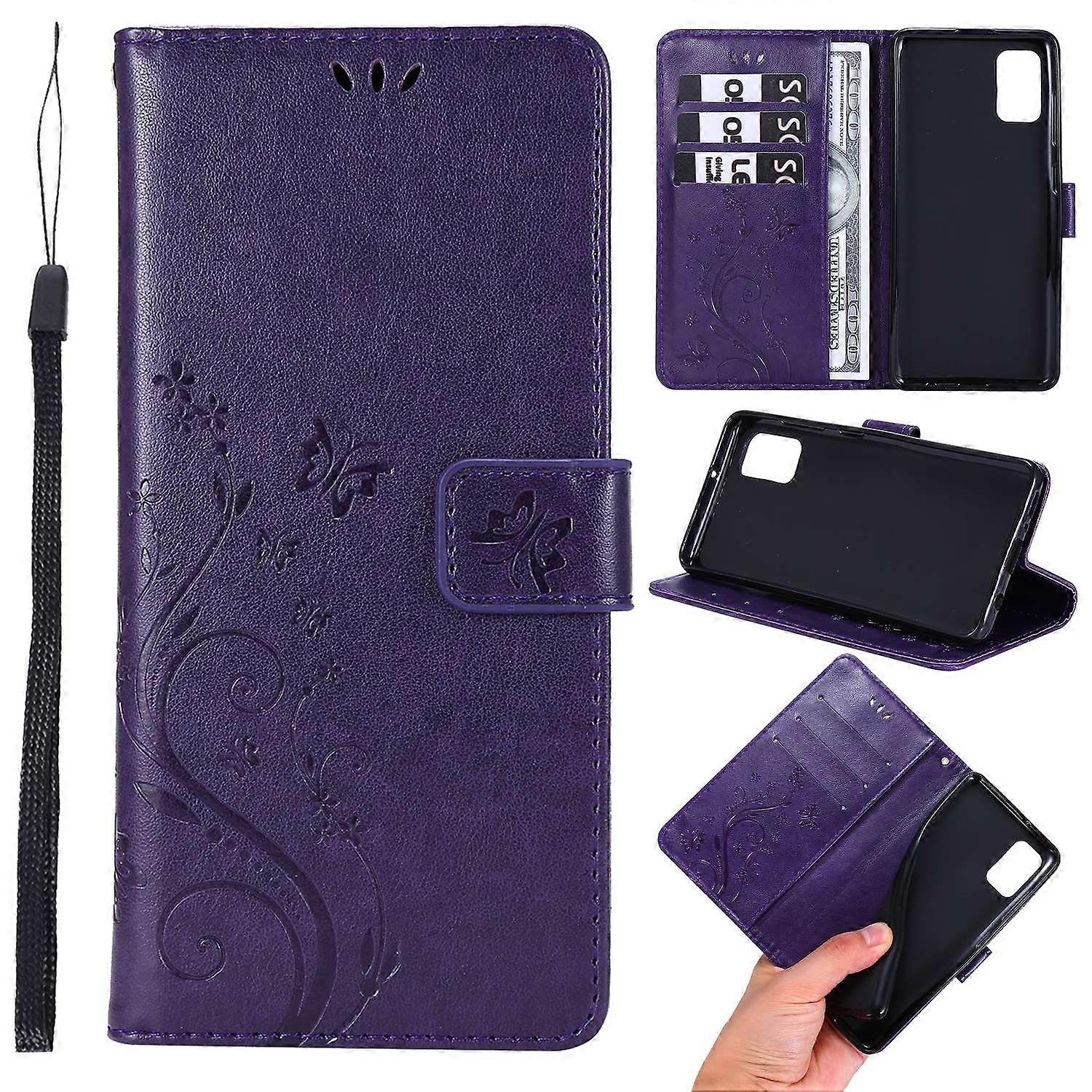 •Imprinted with butterflies pattern, personalizes the device •Wallet design: 3 card slots + 1 cash pocket •Foldable stand for convenient viewing •Reserved receiver hole for talking with case closed •Double-sided magnetic strap, not affect viewing •Come with a wrist strap for easy carrying Compatible with: •Galaxy A41 (Global Version) Package included: •1 x Imprint Butterflies Wallet Stand Flip Leather Phone Case •1 x Wrist Strap •Other items not included