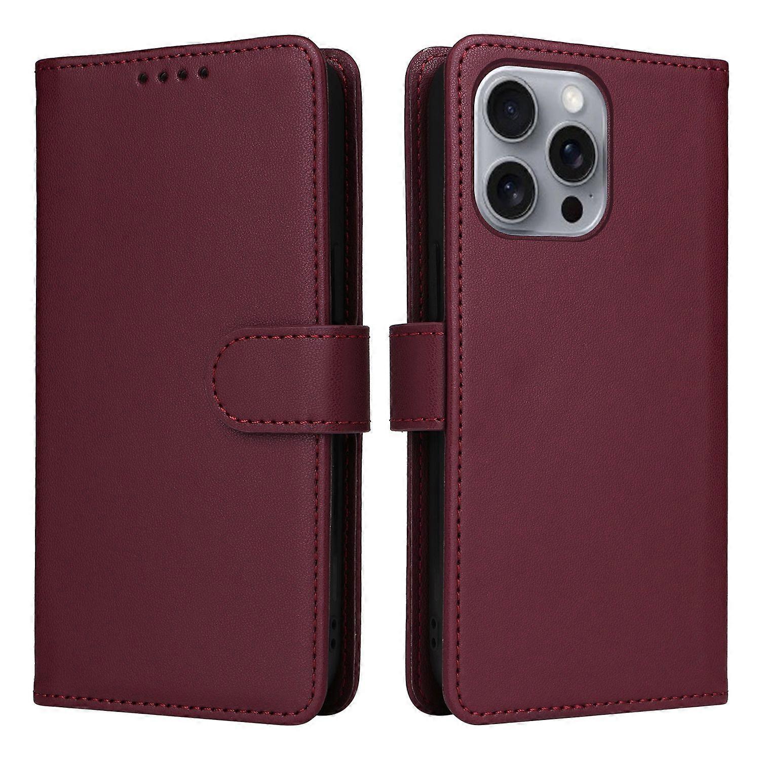For iPhone 16 Pro Max Magnetic Case BETOPNICE Detachable PU Leather Phone Cover with Strap - Wine Re
