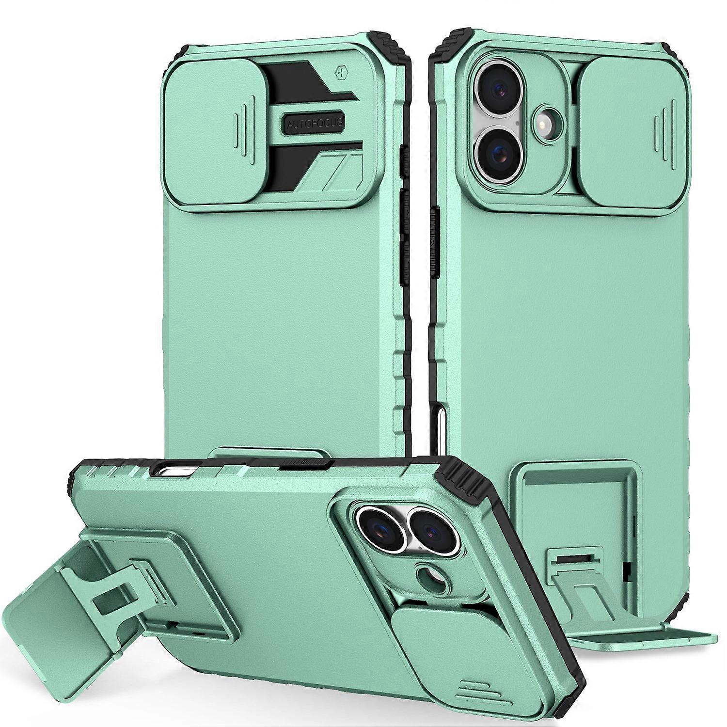 【Durable Material Protection】Hard PC back cover, soft TPU bumper combined to provide double-layer protection. The case's shock-absorbing TPU bumper keeps your phone safe from the occasional drop, while its PC back will protect your phone from daily wear and tear, such as scratches 【Hands-Free Stable Kickstand】The built-in kickstand with 2 angles to use is designed for convenient hands-free watching TV and viewing 【Camera and Screen Better Protection】The camera and screen are higher, which can better protect your phone from scratches and shocks 【Slider Camera Protection】According to multiple tests and multiple adjustments, the sliding window and the shell are tight, and the sliding window is easy to slide but not loose 【Four Corners Fall Protection】 The four corners strip design can provide full protection for your phone Compatible with: •iPhone 16 Package included: •1 x Phone Case •Other items not included